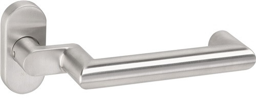 Rahmentürbeschlag in H-Technik mit Rosetten nach DIN 18255 und DIN EN 1906 aus Edelstahl , bestehend aus: Türdrücker Modell 166X aus Edelstahlrundrohr im Gehrungsschnitt (1.4301), Durchmesser 21,3 mm mit 1,5 mm Wandstärke, mit Ansatzführung und Rastnut, mit Madenschraube M5 als zusätzliche Fixierung der Türdrücker mit dem Vierkantstift zur optimalen Kraftübertragung in das Türblatt. Montage durch einfaches Einrasten der Türdrücker in die auf der Tür vormontierten Unterteile. Der Drücker erfüllt die Richtlinien des Bundesverbandes der Unfallkassen e. V. (BUK) - Sicherheitsabstand zur Schließkante 25 mm. Die Rastung kann mittels Demontageschlüssel wieder gelöst werden. Der Drücker erfüllt die Vorgaben der DIN EN 179 (VK 9mm). Oberfläche matt geschliffen Rosettenunterkonstruktion in Kunststoff-Stahlverbundbau mit schwarzer Zink/Nickel Oberfläche für optimalen Korrosionsschutz, integriertes Hochhaltemodul mit Federunterstützung, DIN links und DIN rechts verwendbar, zur Unterstützung des Schlosses für eine längere Lebensdauer. Festdrehbarlagerung der Drücker mit selbsttätig einrastender Rundumverriegelung und 5 mm Lagerstelle als wartungsfreies Gleitlager mit elastischem Ausgleichsbereich zum Aufheben möglicher Montageungenauigkeiten. Rosetten-Abdeck-Kappe, oval, aus Edelstahl (1.4301), 33 x 71 mm, 10,5 mm hoch, 1,5 mm Wandstärke. Ausgelegt und geprüft für den Objektbereich, Benutzerkategorie nach DIN EN 1906 - Klasse 4 Garnitur · Vierkant 8 mm · Artikel: HEWI 162XAH51.640 · Weitere technische Eigenschaften Breite: 33mm • Drückerlänge: 163mm • Drückertiefe: 69mm • Stärke: 10,5mm • Anschlagrichtung: DIN links / rechts • Norm: DIN 1906 • Lagerung: fest-drehbar • Rosetten-Höhe: 71 mm