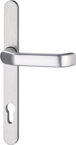 für Rahmentüren/Nebeneingangstüren · Entfernung 92 mm · Vierkant 8mm · PZ-gelocht · Drücker fest-drehbar gelagert · massive Schilder· oval · Stärke 10 mm · Höhe 245 mm · Breite 26 mm · Verschraubung von innen nach außen · innen sichtbar verschraubt · Lieferung inkl. Stift und Schrauben · für Türstärke 68-73 mm · Drückergarnitur · Weitere technische Eigenschaften Zylinderabdeckung: ohne ZA • Norm: DIN 1906 • Lagerung: fest/drehbar