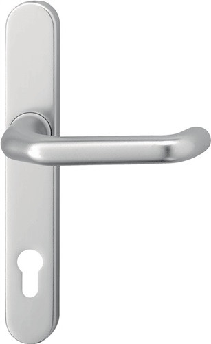 Drückergarnitur für Rahmentüren/Haustüren · Entfernung 92 mm · Vierkant 8 mm · PZ-gelocht · Drücker fest-drehbar gelagert · innen mit Hochhaltefeder · Clipschildtechnik auf Druckgussunterkonstruktion · Stärke 10 mm · Höhe 245 mm · Breite 36 mm · Verschraubung von innen nach außen · unsichtbar verschraubt · Lieferung ohne Stift und Schrauben · Weitere technische Eigenschaften Ergänzung: Lieferung ohne Stift und Schrauben • Zylinderabdeckung: ohne ZA • Norm: DIN 1906 • Lagerung: fest/drehbar