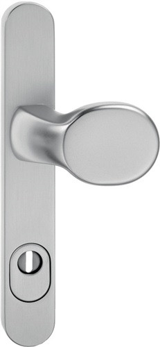 Wechselgarnitur für Rahmentüren/Haustüren · 92 PZ-gelocht mit Zylinderabdeckung · Drücker fest-drehbar gelagert mit Hochhaltefeder· 8 mm Vierkant · Clipschildtechnik auf Druckgussunterkonstruktion · Höhe 245 mm · Breite 36 mm · Stärke 15 mm (EST = 10 mm) · Verschraubung von innen nach außen · unsichtbar verschraubt · Lieferung ohne Stift und Schrauben · Weitere technische Eigenschaften Ergänzung: Lieferung ohne Stift und Schrauben • Zylinderabdeckung: mit ZA • Norm: DIN 1906 • Lagerung: fest/drehbar