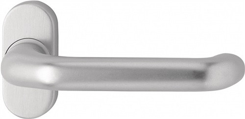 für Rahmentüren/Haustüren · fest-drehbar auf ovaler Rosette mit Hochhaltefeder · 8 mm Vierkant · Rosette: Stärke 14,5 mm · Höhe 75 mm · Breite 34 mm · unsichtbare Verschraubung · Lieferung ohne Stift und Schrauben · DIN links / rechts · Weitere technische Eigenschaften Breite: 34mm • Drückerlänge: 135mm • Drückertiefe: 72mm • Stärke: 14,5mm • Anschlagrichtung: DIN links / rechts • Norm: DIN 1906 • Lagerung: fest-drehbar • Rosetten-Höhe: 75 mm