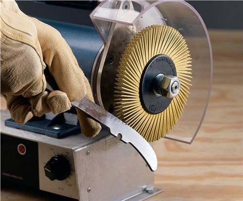 Borsten aus flexiblem Kunststoff mit keramischen Schleifkörnern (Cubitron™) durchsetzt · hohe Reinigungswirkung · z. B. Schweißnahtreinigung auf Edelstahl · mit gleichbleibendem hochwertigem Finish · erzeugt eine vollkommen gratfreie Oberfläche · besonders geeignet für geformte Werkstücke · ideal für den Einsatz auf dem Schleifbock, Geradschleifer oder biegsamen Wellen mit Flansch Ø 25,4 mm · Scheiben-Ø: 150 mm x Breite: 12 mm · Lieferung komplett mit Adapterstücken für die Reduzierung des Innendurchmessers · Weitere technische Eigenschaften Schleifmittel: Cubitron • Farbe: gelb • max. Drehzahl: 6000min-¹