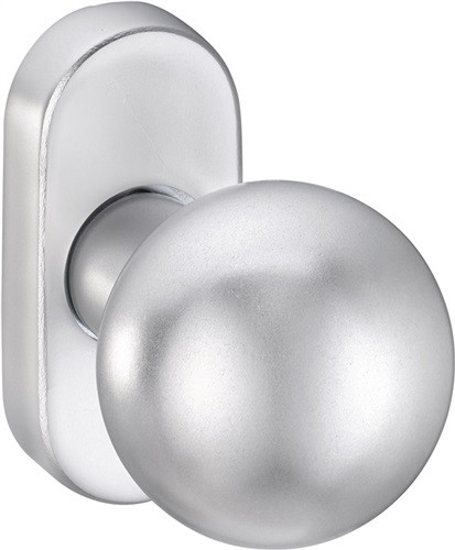 für Rahmentüren · gerade, auf ovaler Rosette · mit unsichtbarer Befestigung · Höhe 75 mm · Breite 34 mm · Stärke 14,5 mm · Schraublochabstand 50 mm · fest oder fest/drehbar (federnd gelagert) · Weitere technische Eigenschaften Befestigungssystem: verdeckte Verschraubung • Anschlagrichtung: links / rechts • Farb-Nr.: EST • Knopfdurchmesser: 52mm