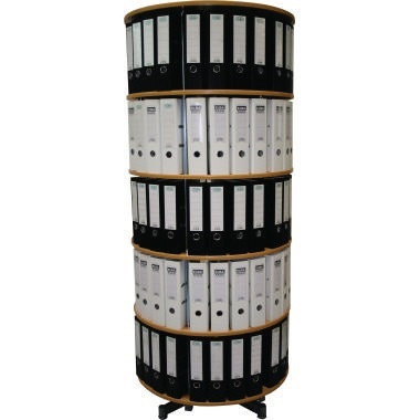 Für DIN A4-Ordner mit gemischtem Schriftgut. An der Oberseite der Etagenböden verhindert eine erhöhte Kunststoffumrandung ein Herausrutschen der Ordner. Ordnersäulen fassen bis zu 80 % mehr Aktenordner als vergleichbare Wandregale. Leicht und geräuschlos gesamt drehbar. Jede Ordnersäule kann ohne Rollen bis 6 Etagen und mit Rollen bis 4 Etagen aufgestockt werden. Lieferung erfolgt ohne Zubehör. Einfache Selbstmontage. · Farbe: buche · Anzahl der Etagen: 5 Etagen · max. Anzahl der Ordner je Etage: 24 Ordner · Masse (Gewicht): 52 kg · Höhe: 1,93 m · Garantie gewährt: Ja · Montageart bei Lieferung: zerlegt · Durchmesser: 81 cm · drehbare Einzeletage vorhanden: Nein · drehbar: Ja · Anzahl der Ordner gesamt: 120 Ordner · Garantiedauer: 24 Monate