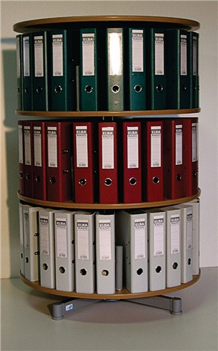 Optimale Nutzung von mehreren Personen gleichzeitig möglich. Platzsparende Rundablage für Ordner. Ordnersäulen fassen bis zu 80 % mehr Aktenordner als vergleichbare Wandregale. Leicht und geräuschlos einzeln drehbar. An der Oberseite der Etagenböden verhindert eine erhöhte Kunststoffumrandung ein Herausrutschen der Ordner. Jede Ordnersäule kann ohne Rollen bis 6 Etagen und mit Rollen bis 4 Etagen aufgestockt werden. Lieferung erfolgt unmontiert und ohne Zubehör. Einfache Selbstmontage. · Garantie gewährt: Ja · Montageart bei Lieferung: zerlegt · max. Anzahl der Ordner je Etage: 24 Ordner · Masse (Gewicht): 37 kg · Höhe: 1,23 m · Garantiedauer: 24 Monate · Durchmesser: 81 cm · drehbare Einzeletage vorhanden: Ja · drehbar: Ja · Anzahl der Ordner gesamt: 72 Ordner · Anzahl der Etagen: 3 Etagen · Farbe: buche