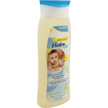 Regina Baby Öl ist mild, schonend und hautfreundlich. Frei von Konservierungs- und Farbstoffen. Mit Vitamnin E. Die behutsame Pflege für empfindliche Babyhaut, vorbeugend gegen Hautreizungen und Wundsein.