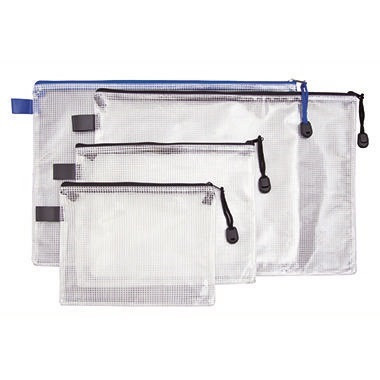 Nylonverstärkte Beutel mit farbigem Reißverschluss. · Reißverschluss vorhanden: Ja · Werkstoff: PVC · Stärke: 0,3 mm · Farbe: blau · Verwendung für Papierformat: DIN A5