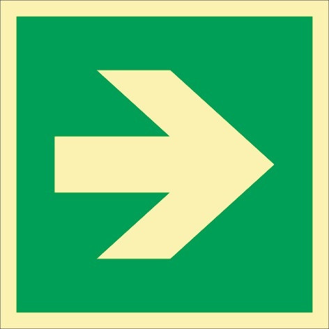 Symbol und Lichtkante langnachleuchtend · nach neue ASR A1.3/DIN EN ISO 7010 und DIN 67510 1Dieser Richtungspfeil darf nur in Verbindung mit einem weiteren Rettungszeichen eingesetzt werden · Richtungsangabe1