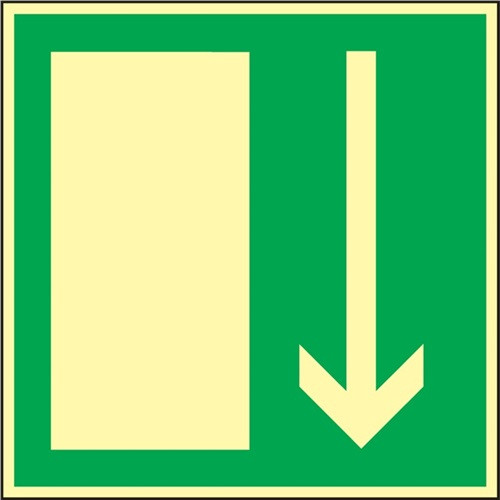 selbstklebende Folie · Symbol und Lichtkante langnachleuchtend · nach BGV A8 und DIN 67510 · Notausgang