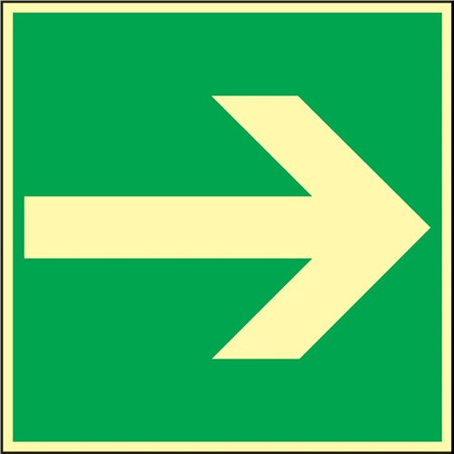 selbstklebende Folie · Symbol und Lichtkante langnachleuchtend · nach ASR A1.3, BGV A8 und DIN 67510 1)Dieser Richtungspfeil darf nur in Verbindung mit einem weiteren Rettungszeichen eingesetzt werden · Richtungsangabe1