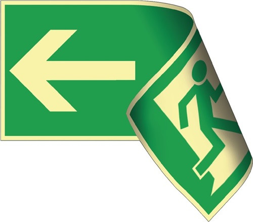 Kunststoffschild · Symbol und Lichtkante langnachleuchtend · nach ASR A1.3, BGV A8 und DIN 67510 · Rettungsweg links/rechts doppelseitig