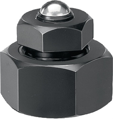 mit drehbarer Kugel · Stahl vergütet, im Brünierton angelassen · Kugel gehärtet Anwendung: Dieses Element eignet sich mit seiner punktförmigen Auflage besonders zum Unterstützen und Ausrichten von Freiformflächen, wie Guss- und Schmiedewerkstücken. Die Justiergenauigkeit beträgt ca. 0,1 mm. Vorteil: · Die drehbar gelagerte Kugel minimiert die Auflagereibung und reduziert die erforderlichen Betätigungskräfte. · Durch die punktförmige Auflage werden keine Drehkräfte aufgrund der Spindelbewegung auf das Werkstück übertragen. Die Position des Werkstückes bleibt erhalten. · Der einfache und robuste Aufbau gewährleistet eine lange Lebensdauer. · Weitere technische Eigenschaften H max.: 70mm • F: 30kN • H min.: 56mm
