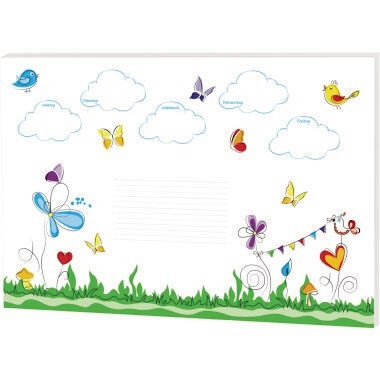 RNK Schreibunterlage 48 x 33 cm (B x H) ohne Folienauflage Papier mehrfarbig Schmetterlinge 30 Bl. · Anzahl der Blätter: 30 Bl. · Maße: 48 x 33 cm (B x H) · Typbezeichnung des Motivs: Schmetterlinge · Werkstoff: Papier · Typbezeichnung der Kalenderaufteilung: Wochenplan · Grammatur: 80 g/m² · Farbe: mehrfarbig · Folienauflage vorhanden: Nein · Kalender vorhanden: Ja