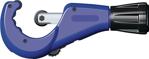für dünnwandige Metallrohre aus AL, CU + INOX bis max. 2 mm · Körper aus Magnesium · Schlitten und Drehknauf aus Zink-Druckguss · mit stahlgelagerter Vorschub-Schnellspindel · Vierrollenführung · mit ausziehbarer NOGA-Entgrater-Klinge · Schneidrad aus DIN 100Cr6-Stahl, schwarz brüniert, Ø 19 mm · pulverbeschichtet · Schneidradwechsel ohne Werkzeug · Ersatzschneidrad im Drehknauf