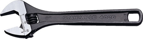 verstellbar · linksgängig · Maulstellung 15° · Chrom-Vanadium-Stahl · phosphatiert · mit Einstellskala · DIN 3117/ISO 6787, Form A