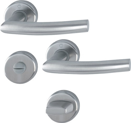 Innentür-Rosetten-Garnitur · Türgriffe mit Profilstift-Verbindung (8 mm Vierkant) für Türstärke 38-42 mm und Rückholfeder · Rosetten mit Stütznocken unsichtbar verschraubt · DIN links / rechts · Weitere technische Eigenschaften Drückerlänge: 136mm • Befestigungssystem: Profilstift • Ergänzung: D/D • Drückertiefe: 66mm • Nockenabstand: 38mm • Farb-Nr.: F69 • Norm: DIN 1906