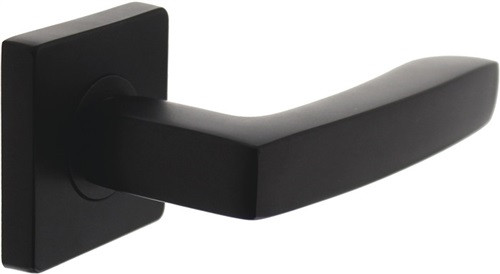 für Zimmertüren · Drücker in kantiger Form geschwungen · Drückerrosette mit Hochhaltefeder · quadratische Rosetten 55 x 55 mm, mit Nocken · Rosetten-Stärke 9,5 mm · mit 8 mm Vierkantstift und Befestigungsschrauben für Türstärken bis 42 mm · Drückerlänge 125 mm · Drückergarnitur · DIN links / rechts · Weitere technische Eigenschaften Drückerlänge: 125mm • Befestigungssystem: Standardstift • Ergänzung: D/D • Drückertiefe: 61mm • Nockenabstand: 38mm • Farb-Nr.: sw • Norm: DIN 1906