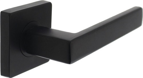 für Zimmertüren · Drücker in kantiger Form gerade flach · Drückerrosette mit Hochhaltefeder · quadratische Rosetten 55 x 55 mm, mit Nocken · Rosetten-Stärke 9,5 mm · mit 8 mm Vierkantstift und Befestigungsschrauben für Türstärken bis 42 mm · Drückerlänge 123,11 mm · Drückergarnitur · DIN links / rechts · Weitere technische Eigenschaften Drückerlänge: 123,5mm • Befestigungssystem: Standardstift • Ergänzung: D/D • Drückertiefe: 55,5mm • Nockenabstand: 38mm • Farb-Nr.: sw • Norm: DIN 1906