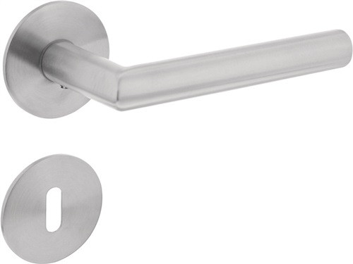 für Zimmertüren · Gehrungsdrücker L-Form · Drücker-Ø 20 mm · Rosetten-Ø 54 mm · Magnetrosetten , mit Nocken · Rosetten-Stärke 3 mm · mit 8 mm Vierkantstift und Befestigungsschrauben für Türstärken bis 42 mm · Drückerlänge 136 mm · Drückergarnitur · DIN links / rechts · Weitere technische Eigenschaften Drückerlänge: 136mm • Befestigungssystem: Standardstift • Ergänzung: D/D • Drückertiefe: 60mm • Nockenabstand: 38mm • Farb-Nr.: 304 • Norm: DIN 1906