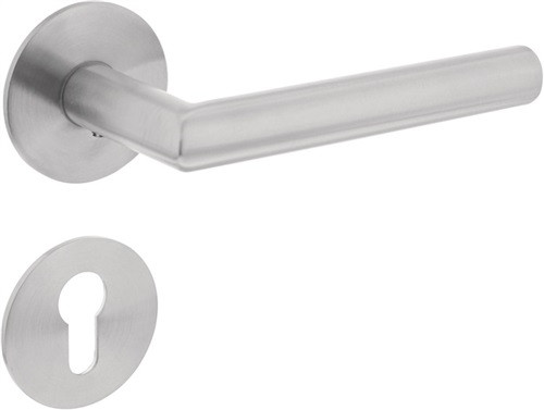 für Zimmertüren · Gehrungsdrücker L-Form · Drücker-Ø 20 mm · Rosetten-Ø 54 mm · Magnetrosetten , mit Nocken · Rosetten-Stärke 3 mm · mit 8 mm Vierkantstift und Befestigungsschrauben für Türstärken bis 42 mm · Drückerlänge 136 mm · Drückergarnitur · DIN links / rechts · Weitere technische Eigenschaften Drückerlänge: 136mm • Befestigungssystem: Standardstift • Ergänzung: D/D • Drückertiefe: 60mm • Nockenabstand: 38mm • Farb-Nr.: 304 • Norm: DIN 1906