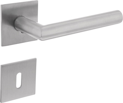 für Zimmertüren · Gehrungsdrücker L-Form · Drücker-Ø 20 mm · quadratische Rosetten 55 x 55 mm · Magnetrosetten , mit Nocken · Rosetten-Stärke 3 mm · mit 8 mm Vierkantstift und Befestigungsschrauben für Türstärken bis 42 mm · Drückerlänge 136 mm · Drückergarnitur · DIN links / rechts · Weitere technische Eigenschaften Drückerlänge: 136mm • Befestigungssystem: Standardstift • Ergänzung: D/D • Drückertiefe: 60mm • Nockenabstand: 38mm • Farb-Nr.: 304 • Norm: DIN 1906