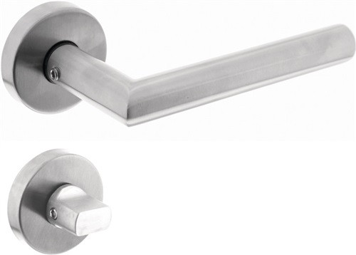 für Zimmertüren · Gehrungsdrücker L-Form · Drücker-Ø 19 mm · Drückerrosette mit Hochhaltefeder · Rosetten-Ø 51 mm, mit Nocken · Rosetten-Stärke 10 mm · mit 8 mm Vierkantstift und Befestigungsschrauben für Türstärken bis 42 mm · Drückerlänge 135 mm · Drückergarnitur · DIN links / rechts · Weitere technische Eigenschaften Drückerlänge: 135mm • Befestigungssystem: Standardstift • Ergänzung: D/D • Drückertiefe: 68mm • Nockenabstand: 38mm • Farb-Nr.: 304 • Norm: DIN 1906