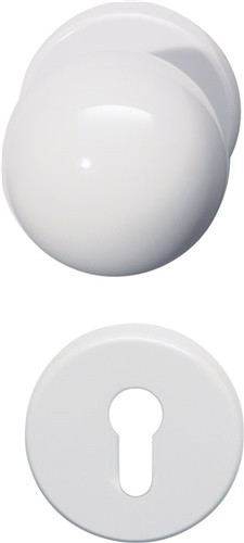 in R-Technik mit Rosetten nach DIN 18255 und DIN EN 1906 aus Polyamid, Oberfläche hochglänzend, bestehend aus: Knopf Modell 123.23R aus Polyamid und Türdrücker in U-Form aus Polyamid mit durchgehendem Stahlkern bis in das Drückerende, durchgängig eingefärbt, Durchmesser 23 mm, mit Ansatzführung und Rastnut, Montage durch einfaches Einrasten der Türdrücker in die auf der Tür vormontierten Unterteile. Die Rastung kann mittels Demontageschlüssel wieder gelöst werden. Der Drücker erfüllt die Vorgaben der DIN EN 179 und DIN 18040. Rosettenunterkonstruktion in Kunststoff-Edelstahlverbundbau, DIN links und DIN rechts verwendbar. Festdrehbarlagerung der Drücker mit selbsttätig einrastender Rundumverriegelung und 5 mm Lagerstelle als wartungsfreies Gleitlager mit elastischem Ausgleichsbereich und zweiter Lagerstelle im Drückerhals. Verdeckte, lockerungssichere Verschraubung mit M4 Schrauben- und Hülsenschraubenkombination sowie Stützzapfen. Wechselgarnitur vorgerichtet für PZ Rosetten-Abdeck-Kappe, rund, aus Polyamid durchgängig eingefärbt, Durchmesser 55 mm, 13 mm hoch, gewölbt, 1,5 mm Wandstärke. Ausgelegt und geprüft für den Objektbereich, Benutzerkategorie nach DIN EN 1906 - Klasse 4 Garnitur, mit Vierkantstift 8 mm, für Türstärke 38-48 mm · Drückerlänge 150 mm · Wechselgarnitur · Weitere technische Eigenschaften Drückerlänge: 150mm • Befestigungssystem: R-Technik • Ergänzung: D/K • Drückertiefe: 67mm • Knopf: Kugel • Nockenabstand: 38mm • Farb-Nr.: 74 • Norm: DIN 1906