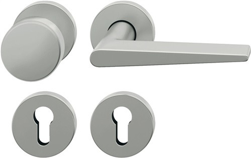 ASL®-Standardlagerung von FSB · Drücker-Modell 1005, in Keilform von Johannes Potente · vorgerichtet für Türstärken von 39 - 58 mm · Vierkant 8mm · Rundrosette mit Stütznocken und Hochhaltefeder · DIN links/rechts verwendbar · inkl. Befestigungsmaterial für durchgehende Verschraubung · Wechselgarnitur mit Knopf 23 0829 · Weitere technische Eigenschaften Drückerlänge: 128mm • Befestigungssystem: ASL®-Technik • Ergänzung: D/K • Drückertiefe: 59mm • Knopf: flach • Nockenabstand: 38mm • Farb-Nr.: 0105 • Norm: DIN 1906