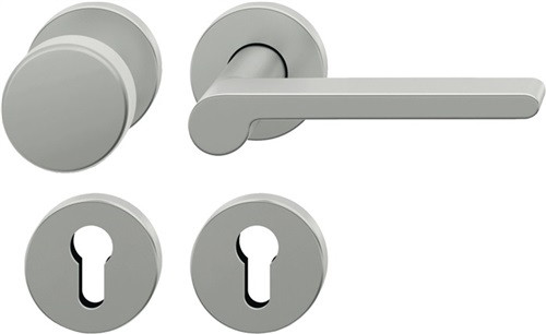 ASL®-Standardlagerung von FSB · Drücker-Modell 1021, bei dem ein runder Drückerhals mit einer flachen Handhabe kombiniert wurde · vorgerichtet für Türstärken von 39 - 58 mm · Vierkant 8mm · Rundrosette mit Stütznocken und Hochhaltefeder · DIN links/rechts verwendbar · inkl. Befestigungsmaterial für durchgehende Verschraubung · Wechselgarnitur mit Knopf 23 0802 oder 23 0829 ·  Weitere technische Eigenschaften Drückerlänge: 137mm • Befestigungssystem: ASL®-Technik • Ergänzung: D/K • Drückertiefe: 60mm • Knopf: flach • Nockenabstand: 38mm • Farb-Nr.: 0105 • Norm: DIN 1906