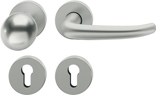 ASL®-Standardlagerung von FSB · Drücker-Modell 1023, wurde von Johannes Potente nach der Vorlage der "Ulmer Klinke" geschaffen und ist seit jeher eine Alternative zu den gängigen U-Furm-Modellen · vorgerichtet für Türstärken von 39 - 58 mm · Vierkant 8mm · Rundrosette mit Stütznocken und Hochhaltefeder · DIN links/rechts verwendbar · inkl. Befestigungsmaterial für durchgehende Verschraubung · Wechselgarnitur mit Knopf 23 0802 · Weitere technische Eigenschaften Drückerlänge: 135mm • Befestigungssystem: ASL®-Technik • Ergänzung: D/K • Drückertiefe: 58mm • Knopf: Kugel • Nockenabstand: 38mm • Farb-Nr.: 0105 • Norm: DIN 1906