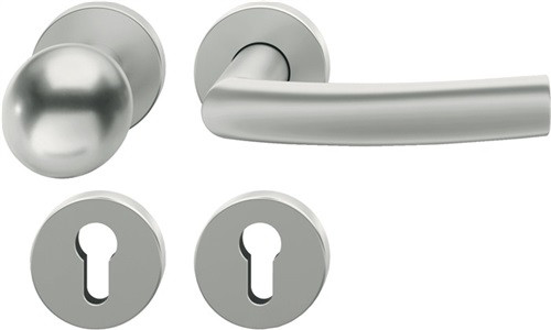 ASL®-Standardlagerung von FSB · das Drücker-Modell 1076, FSB-Hausdesigner Hartmut Weise hat seinem Brakeler Leichtgewicht den Schwung der Bewegung einer Tür mit auf den Weg gegeben · vorgerichtet für Türstärken von 39 - 58 mm · Vierkant 8mm · Rundrosette mit Stütznocken und Hochhaltefeder · DIN links/rechts verwendbar · inkl. Befestigungsmaterial für durchgehende Verschraubung · Wechselgarnitur mit Knopf 23 0829 · Lieferung als Komplett-Garnituren in Einzelverpackung ·  Weitere technische Eigenschaften Drückerlänge: 136mm • Befestigungssystem: ASL®-Technik • Ergänzung: D/K • Drückertiefe: 58mm • Knopf: Kugel • Nockenabstand: 38mm • Farb-Nr.: 0105 • Norm: DIN 1906