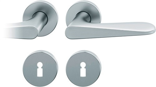 ASL®-Standardlagerung von FSB · das Drücker-Modell 1144, dem Auge signalisiert Jasper Morrison, dass diese Türklinke ein Hand-Werkzeug ist · vorgerichtet für Türstärken von 39 - 58 mm · Vierkant 8mm · Rundrosette mit Stütznocken und Hochhaltefeder · DIN links/rechts verwendbar · inkl. Befestigungsmaterial für durchgehende Verschraubung · Wechselgarnitur mit Knopf 23 0829 · Weitere technische Eigenschaften Drückerlänge: 131mm • Befestigungssystem: ASL®-Technik • Ergänzung: D/D • Drückertiefe: 63mm • Nockenabstand: 38mm • Farb-Nr.: F69 • Norm: DIN 1906