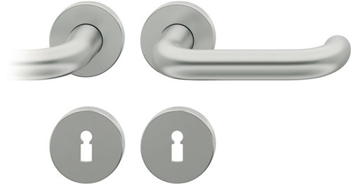ASL®-Standardlagerung von FSB · das Drücker-Modell 1146, Anfang der 1990er Jahre hat FSB den schlichten runden Stab des Pferdestall-Türdrückers überarbeitet, der Hals wurde konisch aufgeweitet und das gebogene Ende mit einem halbkugeligen Auslauf versehen · vorgerichtet für Türstärken von 39 - 58 mm · Vierkant 8mm · Rundrosette mit Stütznocken und Hochhaltefeder · DIN links/rechts verwendbar · inkl. Befestigungsmaterial für durchgehende Verschraubung · Wechselgarnitur mit Knopf 23 0829 ·  Weitere technische Eigenschaften Drückerlänge: 142mm • Befestigungssystem: ASL®-Technik • Ergänzung: D/D • Drückertiefe: 62mm • Nockenabstand: 38mm • Farb-Nr.: 0105 • Norm: DIN 1906