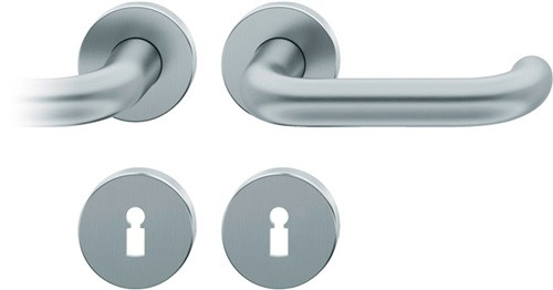 ASL®-Standardlagerung von FSB · das Drücker-Modell 1146, Anfang der 1990er Jahre hat FSB den schlichten runden Stab des Pferdestall-Türdrückers überarbeitet, der Hals wurde konisch aufgeweitet und das gebogene Ende mit einem halbkugeligen Auslauf versehen · vorgerichtet für Türstärken von 39 - 58 mm · Vierkant 8mm · Rundrosette mit Stütznocken und Hochhaltefeder · DIN links/rechts verwendbar · inkl. Befestigungsmaterial für durchgehende Verschraubung · Wechselgarnitur mit Knopf 23 0829 · Weitere technische Eigenschaften Drückerlänge: 142mm • Befestigungssystem: ASL®-Technik • Ergänzung: D/D • Drückertiefe: 62mm • Nockenabstand: 38mm • Farb-Nr.: F69 • Norm: DIN 1906
