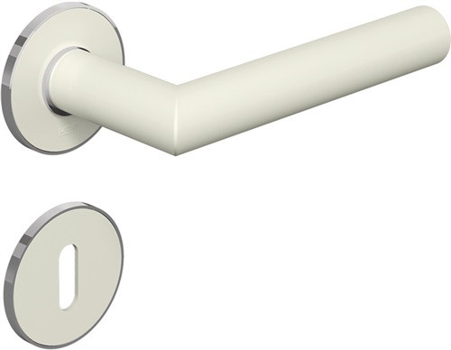 BiColor in Edition matt · Zimmergarnitur inkl. Schlüsselrosetten, mit flachen Rosetten, nach DIN 18255 und DIN EN 1906 und Inlay aus farbigem Polyamid mit matter Oberfläche, bestehend aus: Türdrücker Modell 162.21PB... in Gehrungsform aus Polyamid matt · mit durchgehendem Stahlkern bis in das Drückerende, durchgängig eingefärbt, Drücker-Ø 21,3 mm, mit Ansatzführung und Gewindestift M5 als zusätzliche Fixierung der Türdrücker mit dem Vierkantstift zur optimalen Kraftübertragung in das Türblatt · flache Drücker- und Schlüssel-Rosetten, 305... und 306.23VI..., rund, Rosetten-Ø 52 mm, 4,0 mm hoch · verdeckte, lockerungssichere Verbindung: Drücker und Rosetten sind festdrehbar vormontiert, mit in das Türblatt eintauchende Stützzapfen · einfache und schnelle Montage durch Einrasten vormontierter Baugruppen · Material der Rosetten Edelstahl (1.4301) in matt oder in PVD-Beschichtung matt · Rosetteneinleger aus Polyamid matt · ausgelegt und geprüft für den Objektbereich, Gebrauchskategorie nach DIN EN 1906 - Klasse 4 · Drückergarnitur · DIN links / rechts verwendbar · Vierkant: 8 mm · Weitere technische Eigenschaften Drückerlänge: 135mm • Ergänzung: D/D • Drückertiefe: 67mm • Farb-Nr.: 99m-99m-XA • Norm: DIN 1906