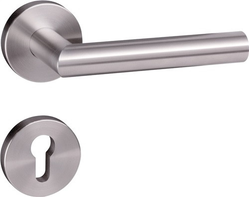 Frei-Besetzt-Garnitur in B-Technik mit Rosetten nach DIN 18255 und DIN EN 1906 aus Edelstahl, bestehend aus: Türdrücker Modell 162X aus Edelstahlrundrohr im Gehrungsschnitt (1.4301), Durchmesser 21,3 mm mit 1,5 mm Wandstärke, mit Ansatzführung und Rastnut, mit Madenschraube M5 als zusätzliche Fixierung der Türdrücker mit dem Vierkantstift zur optimalen Kraftübertragung in das Türblatt. Montage durch einfaches Einrasten der Türdrücker in die auf der Tür vormontierten Unterteile. Die Rastung kann mittels Demontageschlüssel wieder gelöst werden. Oberfläche matt geschliffen Rosettenunterkonstruktion in Kunststoffverbundbau, integriertes Hochhaltemodul mit Federunterstützung, DIN links und DIN rechts verwendbar, zur Unterstützung des Schlosses für eine längere Lebensdauer. Festdrehbarlagerung der Drücker mit selbsttätig einrastender Rundumverriegelung und 5 mm Lagerstelle als wartungsfreies Gleitlager mit elastischem Ausgleichsbereich zum Aufheben möglicher Montageungenauigkeiten. Verdeckte, lockerungssichere Verschraubung mit 5 mm Spaxschrauben sowie in das Türblatt eintauchenden Stützzapfen. WC-Ausführung mit Notöffnung mittels Vierkantdorn oder Münze und Schauscheibe (Anzeige rot/weiß) auf der Außenseite. Rosetten-Abdeck-Kappe, rund, aus Edelstahl (1.4301), Durchmesser 55 mm, 10,5 mm hoch, 1,5 mm Wandstärke. Ausgelegt und geprüft für den Objektbereich, Benutzerkategorie nach DIN EN 1906 - Klasse 3 Garnitur mit Vierkantstift 8 mm Benutzerkategorie: Klasse 3 Dauerhaftigkeit: Klasse 7 Türmasse: keine Klassifizierung festgelegt Feuerbeständigkeit: Klasse 0 Sicherheit: Klasse 0 Korrosionsbeständigkeit Klasse: 4 Einbruchssicherheit: Klasse 0 Ausführungsart: A Artikel: HEWI 162XAB02.230 ·  Weitere technische Eigenschaften Drückerlänge: 135mm • Befestigungssystem: B-Technik • Ergänzung: D/D • Drückertiefe: 62mm • Nockenabstand: 38mm • Farb-Nr.: XA • Norm: DIN 1906