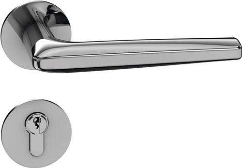 Zimmergarnitur mit flachen Rosetten nach DIN 18255 und DIN EN 1906 aus Edelstahl, bestehend aus: Türdrücker Modell 261X... aus Edelstahl, massiv (1.4301), Durchmesser 21,3 mm, Länge 147,7 mm, Breite max. 24,5 mm, mit Ansatzführung und Rastnut, mit Gewindestift M5 als zusätzliche Fixierung der Türdrücker mit dem Vierkantstift zur optimalen Kraftübertragung in das Türblatt · Flache Rosetten 305.21X... und 306.23X..., aus Edelstahl (1.4301), rund, Durchmesser 52 mm, 3,0 mm hoch · Verdeckte, lockerungssichere Verbindung: Drücker und Rosetten sind festdrehbar vormontiert, sowie in das Türblatt eintauchende Stützzapfen · Oberfläche matt geschliffen · Ausgelegt und geprüft für den Objektbereich · Gebrauchskategorie nach DIN EN 1906 Klasse 4, mit Vierkantstift 8 mm · Drückergarnitur · DIN links / rechts verwendbar · Weitere technische Eigenschaften Drückerlänge: 148mm • Ergänzung: D/D • Drückertiefe: 68mm • Farb-Nr.: XA • Norm: DIN 1906