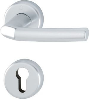 Innentür-Rosetten-Garnitur · Kunststoffunterkonstruktion mit Stütznocken · Profilstift-Verbindung · verdeckte, durchgehende Verschraubung mit selbstschneidenden Gewindeschrauben · Drückergarnitur · Anschlagrichtung DIN links / rechts Entfernung 72 mm, Entfernung Bad SK/OL 78 mm Inkl. Befestigungsmaterial für Türstärke 37 - 42 mm bestehend aus: · 1 Profilstift für 8 mm Schlossnuss · 1 Aufsteckhülse für 8,5 mm Schlossnuss (Ö-Norm) · 4 Schrauben M4 x 45 mm · WC Ausführung: zusätzlich 1 Profilstift für 5 mm Schlossnuss · 1 Aufsteckhülse für 5 - 8 mm Schlossnuss · Weitere technische Eigenschaften Drückerlänge: 124mm • Befestigungssystem: Profilstift • Ergänzung: D/D • Drückertiefe: 55mm • Nockenabstand: 38mm • Farb-Nr.: F1 • Norm: DIN 1906