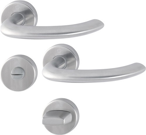 Innentür-Rosetten-Garnitur geprüft nach DIN EN 1906 (Benutzer-Kategorie 3) · Türgriffe mit Schnellstift-Verbindung (mit 8 mm Vollstift) für Türstärke 37 - 42 mm und Rückholfeder · Rosetten mit Stütznocken unsichtbar verschraubt · Anschlagrichtung DIN links / rechts · Weitere technische Eigenschaften Drückerlänge: 144mm • Befestigungssystem: Schnellstift • Ergänzung: D/D • Drückertiefe: 69mm • Nockenabstand: 38mm • Farb-Nr.: F69 • Norm: DIN 1906