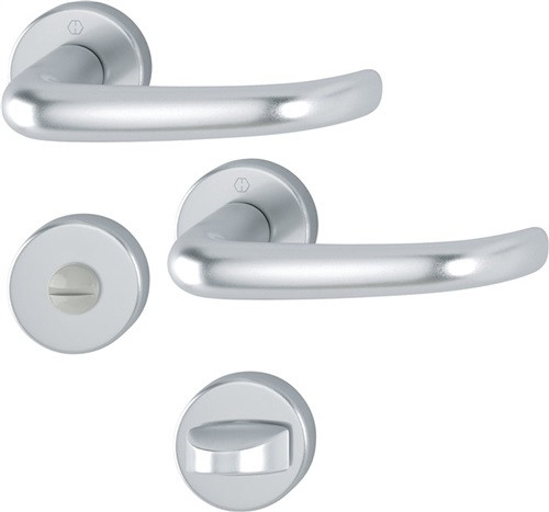 Innentür-Rosetten-Garnitur nach DIN EN 1906 (Benutzer-Kategorie 3) · Türgriffe mit Schnellstift-Verbindung (mit 8 mm Vollstift) fürTürstärke 37 - 42 mm · Rosette mit Kunststoff-Unterkonstruktion, Rückholfeder und Stütznocken · Befestigung verdeckt, durchgehend · wechselseitig inkl. Mehrzweckschrauben · Anschlagrichtung DIN links / rechts · Weitere technische Eigenschaften Drückerlänge: 137mm • Befestigungssystem: Schnellstift • Ergänzung: D/D • Drückertiefe: 64mm • Nockenabstand: 38mm • Farb-Nr.: F1 • Norm: DIN 1906