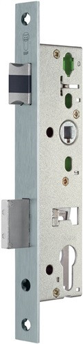 Schlosskasten aus Stahl oben und unten geschlossen · durchgehende Beschlagbohrung oberhalb der Schlossnuss · Späneschutzhülsen · 1-tourig mit stabilem Riegel · Riegelausschluss 21 mm · DIN links und rechts verwendbar · Anschlagrichtung umstellbar · vorgerichtet für Profilzylinder, mit Wechsel · Entfernung 92 mm · 8 mm Klemmnuss · Falle und Riegel vernickelt · Stulp auf Mitte · Stulpbreite 24 mm · Stulplänge 245 mm · käntig · Hinterdornmaß 15 mm · Klassifizierungsschlüssel nach EN 12 209 vorhanden · Weitere technische Eigenschaften Riegel: Metall • Stulpbreite: 24mm • Wechsel: mit Wechsel • Anschlagrichtung: DIN links / rechts • Stulpausführung: käntig • Lochung: PZW