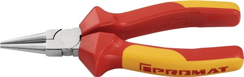 VDE-isoliert bis 1000 V · Spezialwerkzeugstahl · gefertigt gem. IEC / EN 60900, stückgeprüft bei 10000 V im Wasserbad · kurze, runde Backen · präzisionsgeschliffen · Greifflächen geriffelt · zum Anbiegen von Drahtösen · ölgehärtet u. angelassen Kopf verchromt · Griffe mit ergonomischen 2-Komponenten-Hüllen und Abgleitschutz · Weitere technische Eigenschaften Material: Spezialwerkzeugstahl