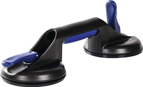 2-Kopf-Kunststoff-Körper · Vakuumaufbau durch Umlegen der Kipphebel · neue Ergonomie durch verbreiterten und erhöhten Griffbereich · für alle gasdichten Oberflächen wie Glas, Kunststoffplatten, Blech, beschichtetes Holz, Marmor, Fliesen etc. · Gummischeiben auswechselbar · Tragrichtung: parallel
