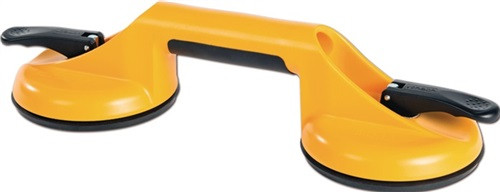 2-Kopf-Kunststoff-Körper mit Längsgriff · für diverse Lasten · Vakuumaufbau durch Umlegen der Kipphebel · geeignet für alle Materialien mit glatten und gasdichten Oberflächen wie Glas, Kunststoffplatten, Blech, beschichtetes Holz, Marmor, Fliesen etc. · Gummischeiben auswechselbar · senkrecht · Tragrichtung: parallel