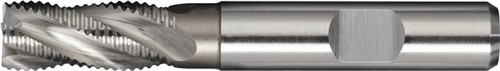 mit Feinschruppverzahnung · HSS-Co5 · DIN 844 · Typ HR · Vierschneider · kurz · 45° Schutzfase · Zentrumschnitt · hinterschliffenes feines Kordelprofil · Zylinderschaft mit Mitnahmefläche · rechtsschneidend · zum Fräsen von Werkstoffen mit Festigkeit bis ca. 800 N/mm² · Weitere technische Eigenschaften Schaft-Ø: 10mm • Freischliff: 9,5mm
