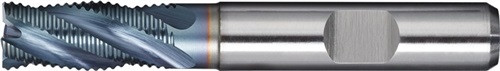 mit Feinschruppverzahnung · HSS-Co5 · TiCN-beschichtet · DIN 844 · Typ HR · Vierschneider · kurz · 45° Schutzfase · Zentrumschnitt · hinterschliffenes feines Kordelprofil · Zylinderschaft mit Mitnahmefläche · rechtsschneidend · zum Fräsen von Werkstoffen mit Festigkeit bis ca. 1200 N/mm² · Weitere technische Eigenschaften Schaft-Ø: 25mm • Freischliff: 24mm