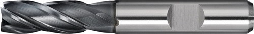 HSS-PM · ALCRONA-beschichtet · DIN 844 · Typ N · Vierschneider · kurz · Zentrumschnitt · Zylinderschaft mit Mitnahmefläche · rechtsschneidend · zum Fräsen von Werkstoffen mit geringer und mittlerer Festigkeit bis ca. 1000 N/mm² · Vibrationsreduktion durch ungleich geteilte Schneiden · verbesserte Werkzeugsteifigkeit durch konischen Spannutengrund · Weitere technische Eigenschaften Schaft-Ø: 6mm • Freischliff: 5,5mm