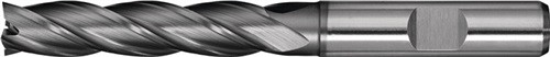 HSS-Co8 · TiCN-beschichtet · DIN 844 · Typ N · Vierschneider · lang · Zentrumschnitt · Zylinderschaft mit Mitnahmefläche · rechtsschneidend · zum Fräsen von Werkstoffen mit geringer und mittlerer Festigkeit bis ca. 1200 N/mm² · Weitere technische Eigenschaften Schaft-Ø: 16mm • Freischliff: 15mm