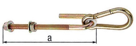 Karabinerhaken nicht einzeln erhältlich · Material: Stahl roh · Oberfläche: galvanisch gelb verzinkt · zum Durchschrauben · Karabinerhaken nicht einzeln erhältlich · Weitere technische Eigenschaften Oberfläche: galvanisch gelb verzinkt • Maß a: 200mm
