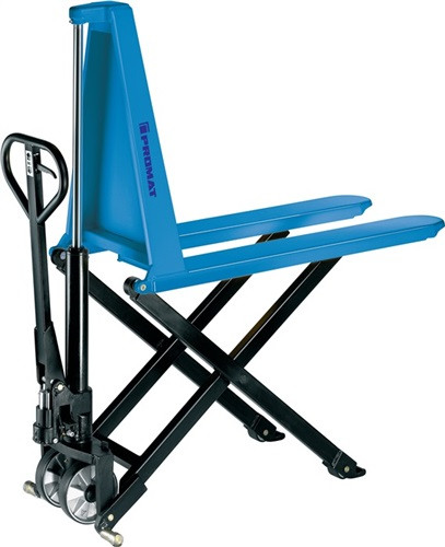 handhydraulisch · einsetzbar als Gabelhubwagen und Hubtisch · mit 1-stufiger Hydraulik · Hydrauliksystem mit Sicherheitsventil · dosierbare Absenkgeschwindigkeit · Schnellhub für Lasten bis 200 kg · palettierte Güter bereitstellen, Verfahren oder Anheben - ohne schweres Heben oder Bücken · Sicherheitsstützen für sicheren Stand bei angehobenen Gabeln · hochwertige Pulverbeschichtung taubenblau, RAL 5014 · Weitere technische Eigenschaften Lastschwerpunkt: 600mm • Farbe: taubenblau, RAL 5014 • Lenkräder: Polyurethan • Wenderadius: 1440mm • Gabelrollen: Polyurethan • Gesamtlänge: 1650mm